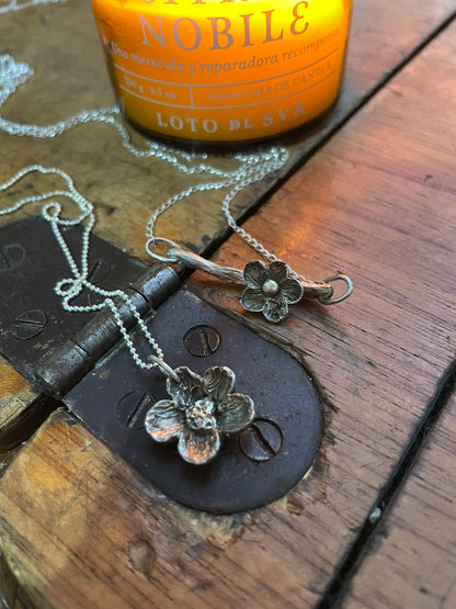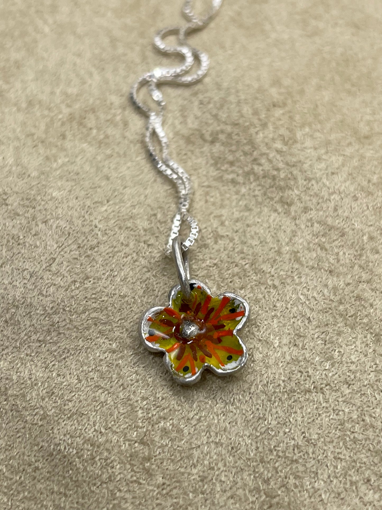 dije de flor hecha a mano en plata 950 y detalles en pintura recubierta con resina, con cadena en plata 925